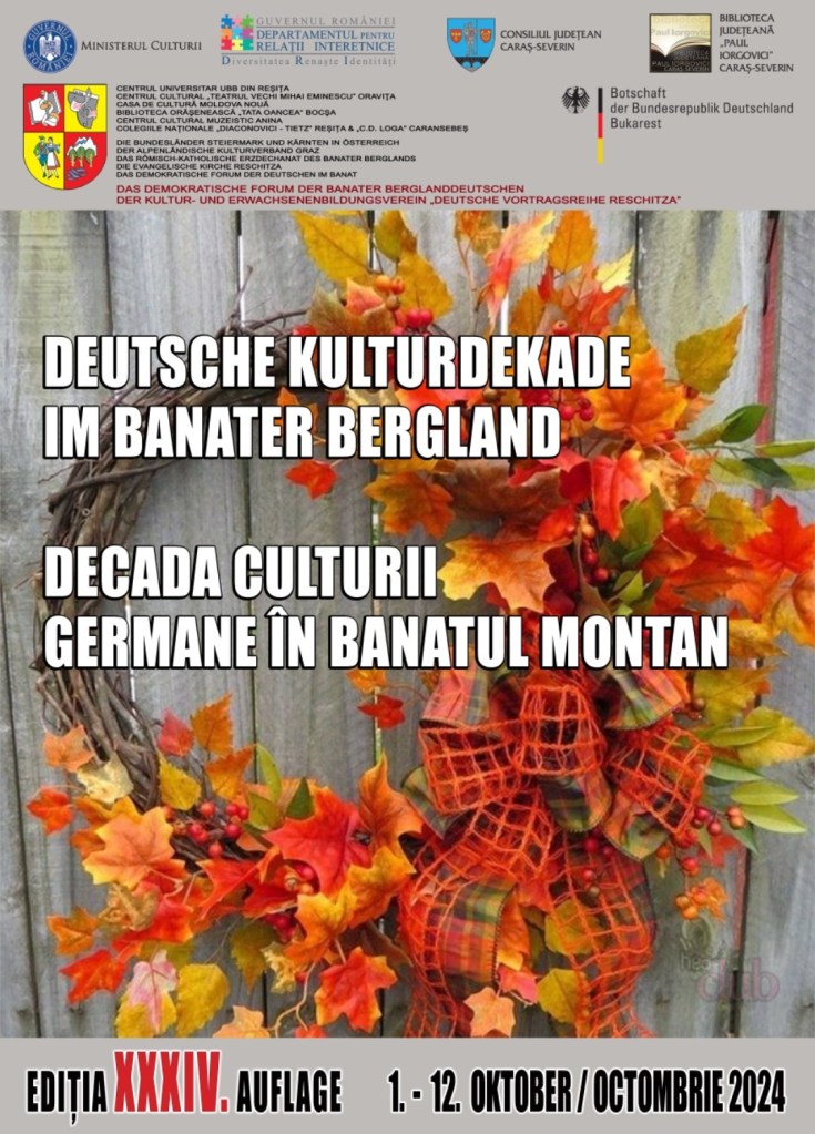 „Decada Culturii Germane în Banatul Montan”, ediția a XXXIV-a, se află la startul ei! În perioada 1 – 12 octombrie 2024, cel mai important ciclu de manifestări culturale ale etniei germane din acest spațiu se va desfășura în 10 zile calendaristice și va demonstra că, chiar dacă trăim cu toții timpuri complicate, dacă există voință, se găsesc și soluții pentru a merge mai departe. Căci numai împreună vom reuși să mergem mai departe…