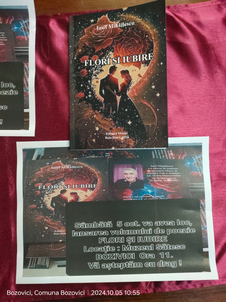 În ziua de 5 octombrie, anul 2024, în sala Muzeului Sătesc din Bozovici, începând cu ora 11.00, a avut loc lansarea volumului de versuri ,,Flori și iubire” aparținând poetului Iosif Mihăilescu, din Lapușnicul Mare.