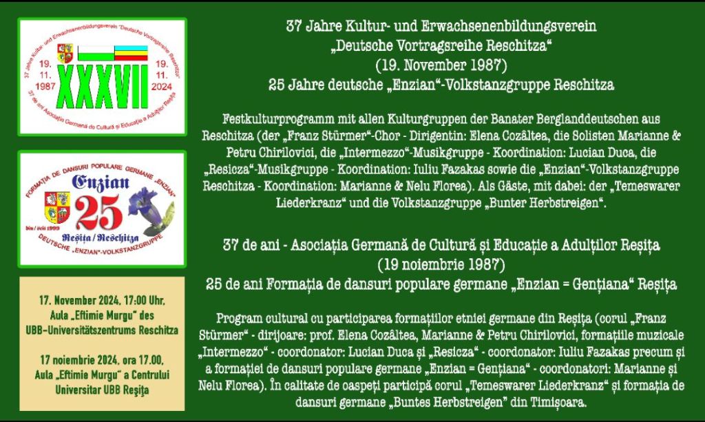 37 de ani – Asociația Germană de Cultură și Educație a Adulților Reșița (19 noiembrie 1987)