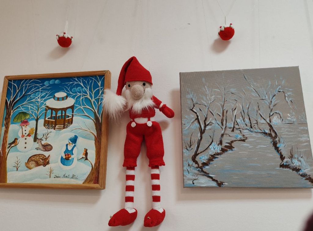 Personajele create de mâinile dibace ale dnei. prof. Stela Boulescu au purtat mulțimea de participanți la eveniment prin poveștile copilăriei, prin poveștile literaturii pentru copii și spre minunata poveste a Nașterii Mântuitorului. Moș Crăciun, Rudolph, Grinch, Omul de Zăpadă, Soldățelul Crăciunului, clopoței și globuri, bradul de Crăciun, dar și scena Nașterii Domnului, toate acestea au fost croșetate cu multă migală și cu mult talent de filologul Stela Boulescu și expuse acum, în prag de sărbători de iarnă, spre bucuria și încântarea participanților de toate vârstele.