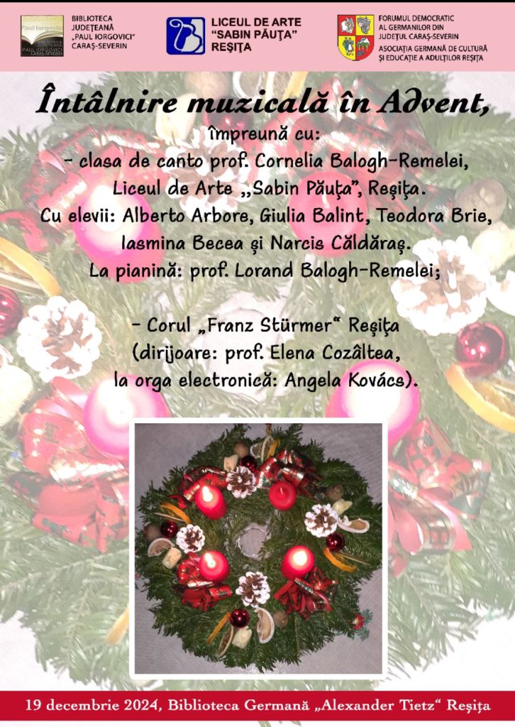 19 decembrie 2024, ora 16.00, Biblioteca Germană „Alexander Tietz“ Reșița: