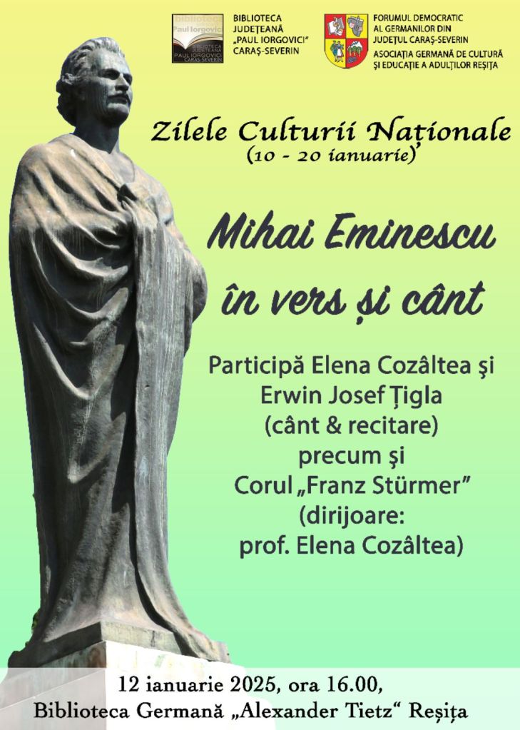 Mihai Eminescu în vers și cânt. Participă Elena Cozâltea și Erwin Josef Țigla (cânt & recitare) precum și Corul „Franz Stürmer” (dirijoare: prof. Elena Cozâltea).