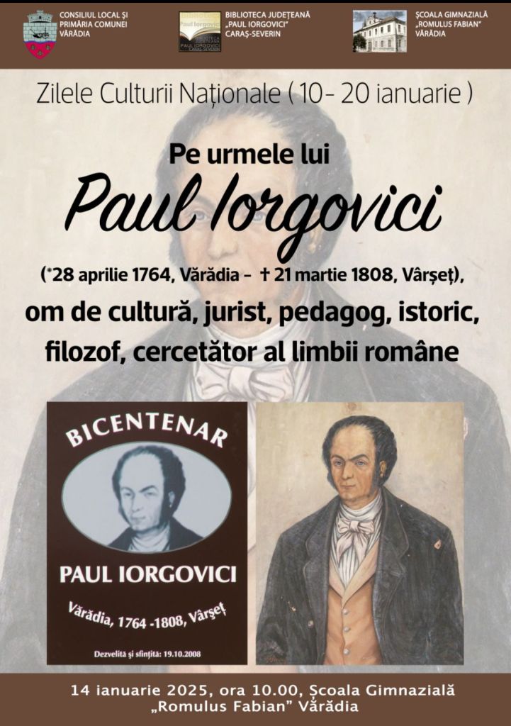 Pe urmele lui Paul Iorgovici (*28 aprilie 1764, Vărădia – † 21 martie 1808, Vârșeț), om de cultură, jurist, pedagog, istoric, filozof, cercetător al limbii române.
