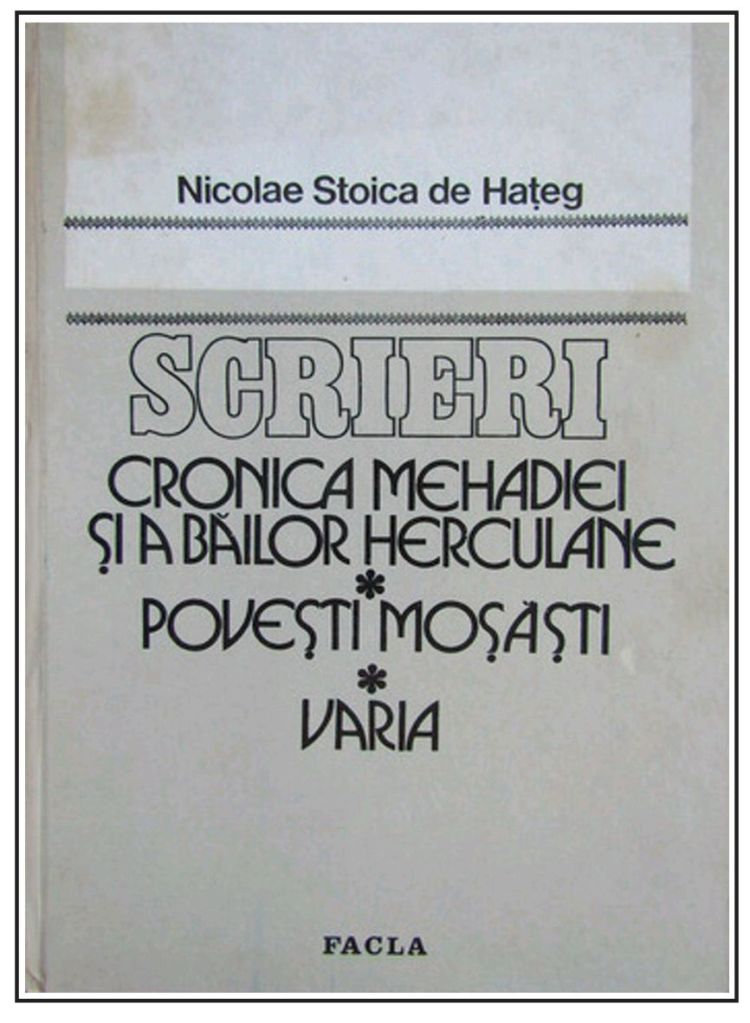 ***,,Cronica Mehadiei și a Băilor Herculane„, scrisă de cronicarul Nicolae Stoica de Hațeg în anul 1829 în limba germană, a fost tradusă și publicată pentru prima dată în limba română prin stăruința și străduința istoricului Costin Feneșan, fiu al Mehadiei pe linia sa paternă, alături de istoricul Damaschin Mioc. Volumul a fost publicat în anul 1984, la Editura Facla din Timișoara.