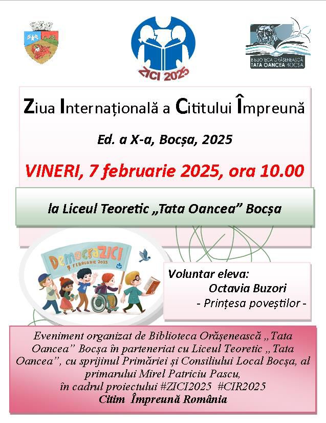 Și în acest an Biblioteca Orășenească „Tata Oancea” din Bocșa, Caraș-Severin, s-a alăturat proiectului #ZICI (Ziua Internațională a Cititului Împreună) cu #CIR (Citește Împreună România) pentru o sesiune de lectură cu voce tare în mijlocul copiilor.