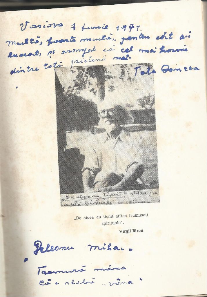 [1] Prin grija scriitorului Marcu Mihail Deleanu, exemplarul primit de acesta de la Tata Oancea cu dedicație se află în fondul de documente speciale al Bibliotecii Orășenești „Tata Oancea” Bocșa. Este un volum important care conține consemnări olografe: cea a lui Tata Oancea pentru Marcu Mihail Deleanu și cea a lui Marcu Mihail Deleanu pentru Biblioteca din Bocșa cu ocazia primirii numelui „Tata Oancea” (14 nov. 1992);