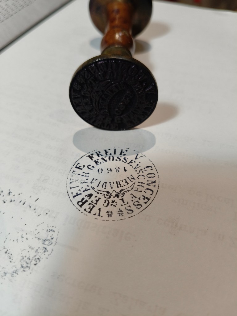 În privința carului mortuar, care există și astăzi în patrimoniul asociației, acesta este compus dintr-un cadru metalic placat cu lemn, sprijinit prin intermediul a 4 arcuri alcătuite, din foi de arc, pe cele două punți cu roți din lemn, cea din față având peridoc. Pe platformă sunt montați vertical câte 4 stâlpi din lemn strunjit și frumos ornat la capătul superior. Dispuși lateral, stâlpii verticali oferă susținere plafonului din lemn. Acesta din urmă este ornat în partea de interior, de jur împrejur, cu pânză neagră de satin cu franjuri. Partea superioară a plafonului, este decorată, în cele patru colțuri superioare, precum și la mijloc, cu ornamente cu specific mortuar, din lemn sculptat, vopsite în negru și alb. În partea din față se află capra dricarului, crucioaiele și oiștea, toate din lemn. Capra dricarului este protejată în cele patru părți laterale și în față, la picioarele dricarului, de un material cauciucat, rezistent la intemperii. Pe cele două laterale, stânga-dreapta, acesta este inscripționat cu textul: CASA DE AJUTOR RECIPROC A MESERIAȘILOR – 1861. La scrierea textului s-au utilizat caractere artistice gotice. Originea, respectiv construcția dricului, aparține capitalei imperiului Austriac, respectiv VIENA. Anul construcției, inscripționat în lemnul ornamentului lateral al dricului, este anul 1861, an ce exprimă, cel mai probabil, anul construcției dricului. Din surse orale, se cunoaște faptul că acesta a fost adus pe propriile roți, din capitala Imperiului Austriac la acea vreme (până la anul 1867, când se formează Imperiul Austro-Ungar), la Mehadia de către un grup format din câțiva dintre meseriașii fondatori. Asociația, care, așa cum am afirmat anterior, funcționează și azi, deține ștampila originală a asociației, care este alcătuită dintr-o placă de metal fixată pe un mâner de lemn. Pe placa metalică se regăsește inscripționat: VEREINTE FREIE CONCESS – GEWERB GENOSSENCHSCHAFT. În arhiva asociației se păstrează registrul protocoalelor de ședință și evidențele membrilor. Nu se cunoaște cu exactitate numărul de membri fondatori și nici numărul lor până la anul 1895, când asociația înregistrează un număr de 31 de membri. Dintre aceștia, 18 sunt de naționalitate română, ceilalți fiind de altă naționalitate, majoritar germană, cu toții conlocuitori ai Mehadiei.