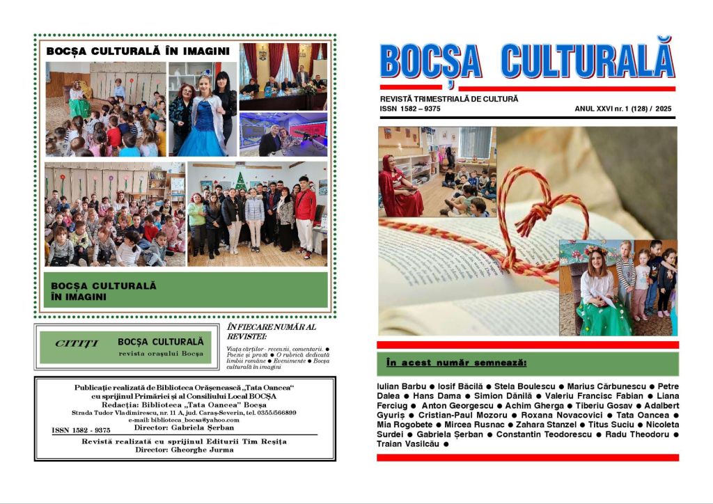 Se află sub tipar primul număr al revistei „Bocșa culturală” pe anul 2025, revistă care pășește în cel de-al XXVI-lea an de apariție. Până la varianta tipărită, vă invităm să ne citiți în format PDF! Lectură plăcută!