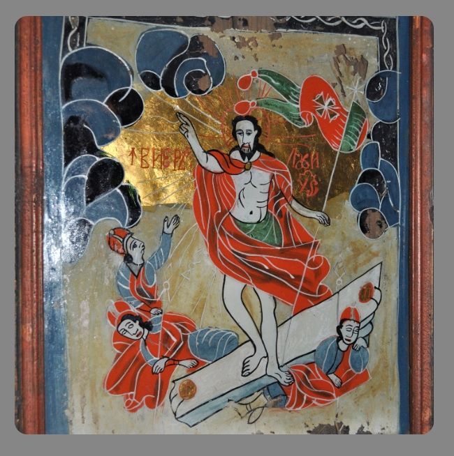Foto: Învierea Domnului (pictură pe sticlă, zugrav anonim, școala de la Nicula, icoană aflată în colecția Arhiepiscopiei Clujului)