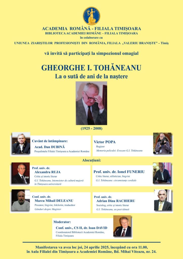 INVITAȚIE – Simpozion omagial: Gheorghe I. TOHĂNEANU 22 aprilie 2025 / uzpcarasseverin Partajează asta: Partajează pe Facebook(Se deschide într-o fereastră nouă) Facebook Partajează pe LinkedIn(Se deschide într-o fereastră nouă) LinkedIn Partajează prin WhatsApp(Se deschide într-o fereastră nouă) WhatsApp Imprimare(Se deschide într-o fereastră nouă) Imprimare Apreciază Încarc...