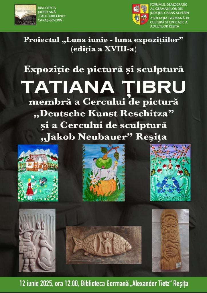 Expoziție de pictură și sculptură Tatiana Țibru, membră a Cercului de pictură „Deutsche Kunst Reschitza” și a Cercului de sculptură „Jakob Neubauer” Reșița.