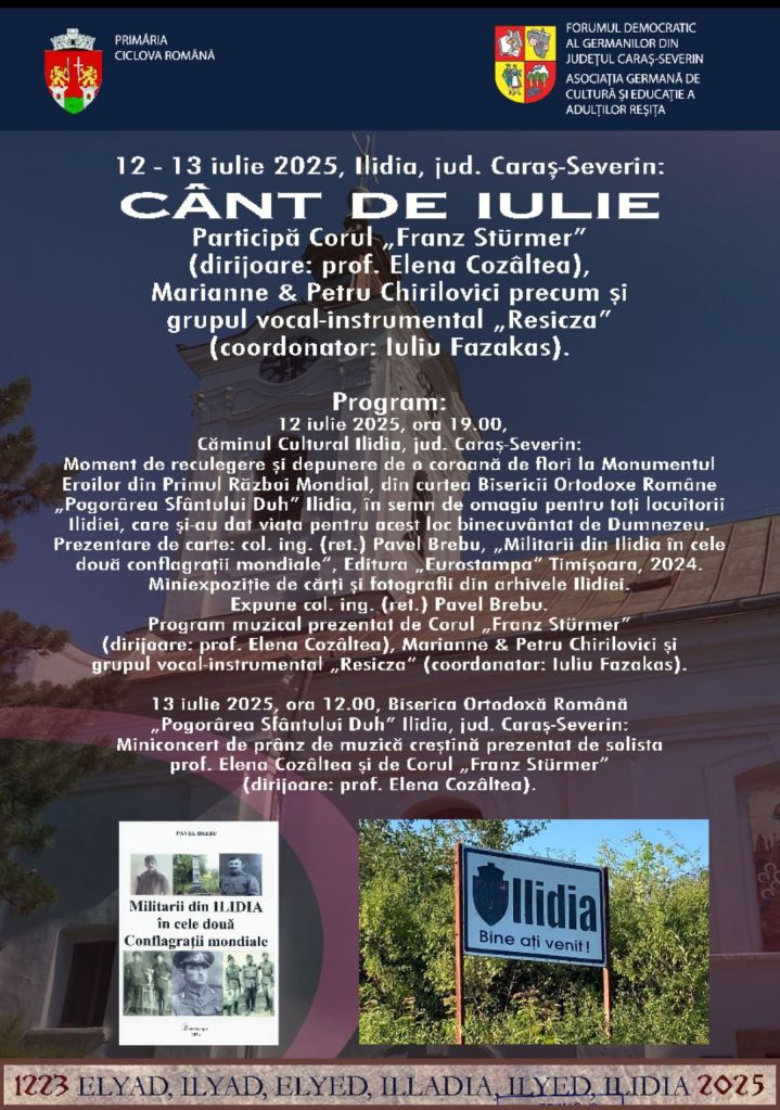 12 iulie 2025, ora 19.00, Căminul Cultural Ilidia, jud. Caraș-Severin: