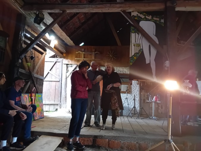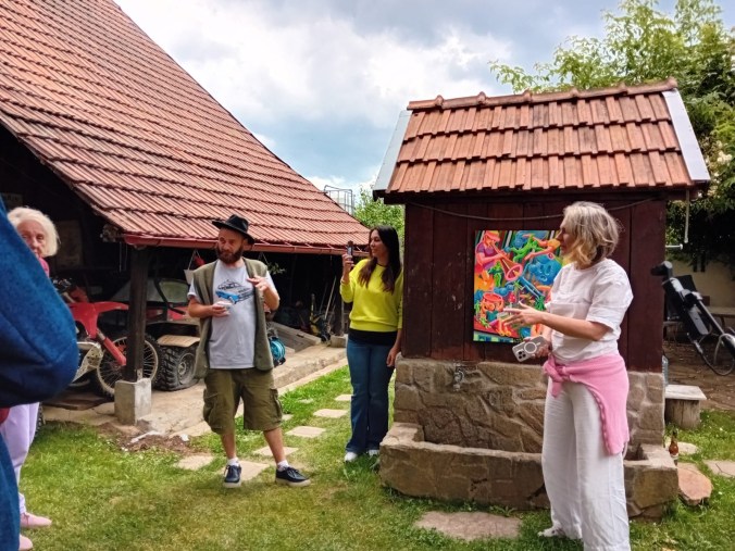 În cadrul aceleiași acțiuni am putut admira și lucrările artiștilor Irlo și EEA, reunite pe simezele improvizate sub titlul de “Apă, zână și țărână”. Despre cei 2 artiști din Arad a vorbit curatorul Gilda Ghinoiu. Artistul vizual Irlo deține două recorduri în România: cea mai mare pictură murală din țară, realizată în 2019 la Timișoara, prin FISART și cea mai mare pictură murală dintr-un centru istoric din România, realizată în același an, la Brașov. Irlo și EEA au fost colegi din clasa a VII-a la Liceul de Artă din Arad, iar la momentul actual formează o familie frumoasă. La această sărbătoare a muzicii și a culorii, care a marcat trei decenii de la nașterea festivalului de jazz de la Gărâna, a fost invitat muzicianul de renume internațional Sabin PAUTZA. Cei prezenți s-au bucurat să-l vadă și să comunice cu celebrul muzician. El care a acordat autografe celor care au dorit să aibă cartea sa numită “Maestrul”, volum semnat de Daniela Caraman Fotea. Și vorbind de prefața festivalului inițiat în 1995, puțină lume știe că Puba Hromadka, a fost studentul și colaboratorul lui Sabin Pautza, încă din primii săi ani de activitate muzicală. În toți acești ani, încă de la începutul festivalului maestrul a fost prezent alături de artiști în calitate de compozitor, dirijor, orchestrator și pianist. Are multe amintiri frumoase legate de jazz și de Gărâna, locul unde an de an se întâlnea cu prietenul lui de-o viață, muzicianul Florian Lungu. Până la urmă, declară maestrul Sabin Pautza, important este că această poveste muzicală născută și crescută la Gărâna, în munții Banatului, va merge mai departe.