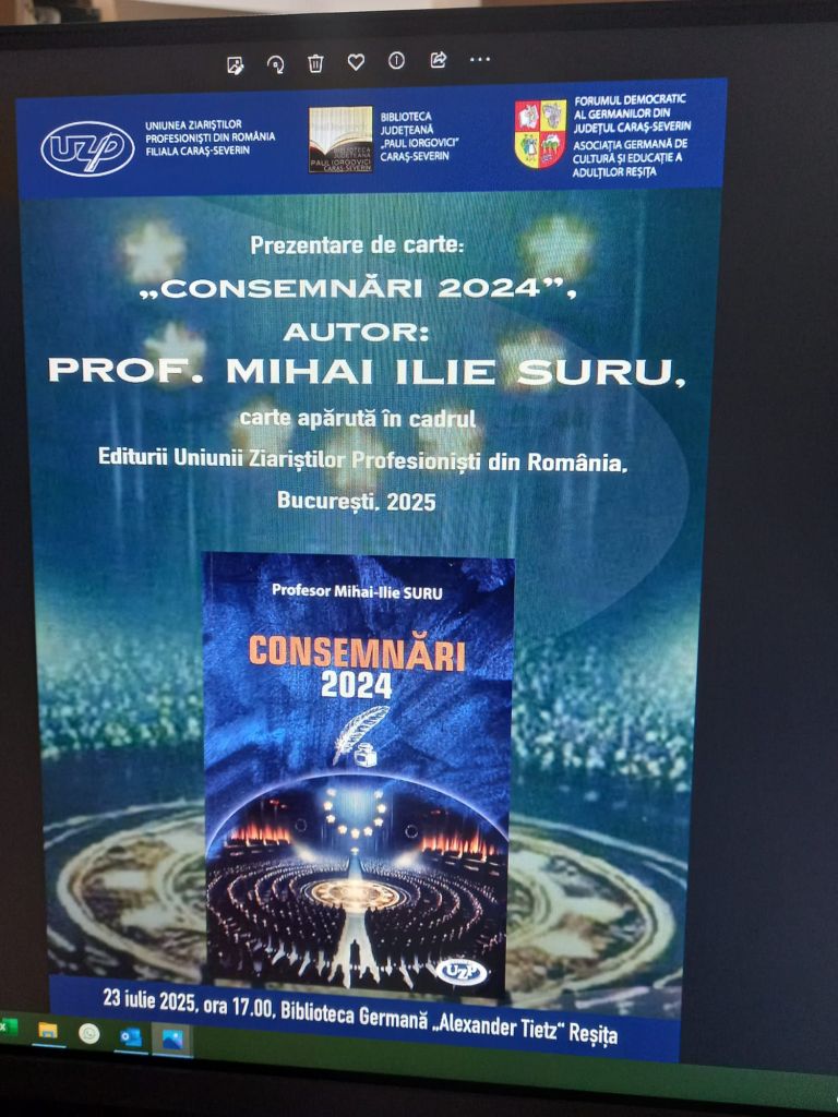 Profesorul Mihai Ilie Suru, membru al Filialei Caraș-Severin a UZPR, lansează o nouă carte – CONSEMNĂRI 2024.