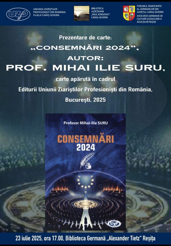 Buchpräsentation: „Consemnări 2024” (= „Aufzeichnungen 2024”), Autor: Prof. Mihai Ilie Suru, Buch erschienen im Verlag „UZPR” Bukarest, 2025.