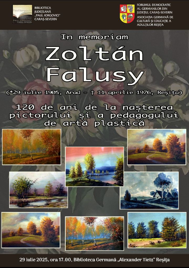 In memoriam Zoltán Falusy (*29 iulie 1905, Arad – † 11 aprilie 1976, Reșița): 120 de ani de la nașterea pictorului și a pedagogului de artă plastică.