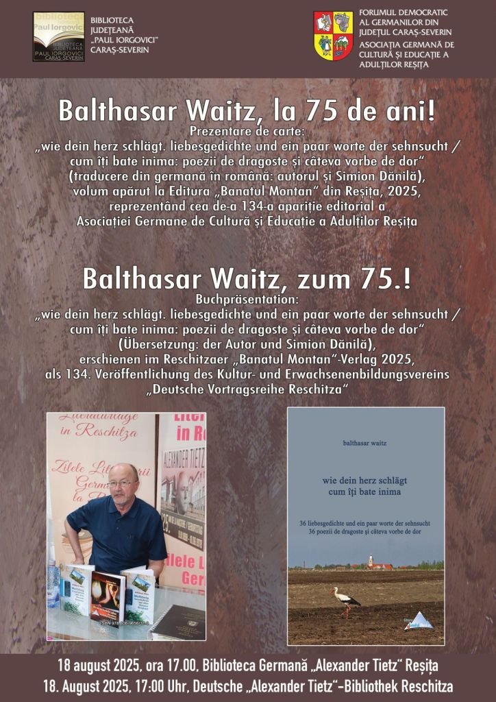 Reșița, municipiul reședință de județ și sediu al filialei Caraș-Severin a Uniunii Ziariștilor Profesioniști din România, își respectă valorile tradiției, personalitățile. Au loc evenimente unul după altul și numitorul comun este promovarea valorilor cultural-artistice locale care au așezat localitatea și Banatul Montan pe harta evenimentelor genului. În 18 august 2025,  Biblioteca Germană „Alexander Tietz” Reșița, din componenta Bibliotecii Județene „Paul Iorgovici”, sub oblăduirea domnului Erwin Josef Țigla, președintele filialei Caraș-Severin a Forumului Democratic al Germanilor din România și membru al UZPR, a fost omagiat scriitorul și jurnalistul Balthasar Waitz, la cei 75 de ani din care majoritatea dăruiți remarcabilei profesii de ziarist.