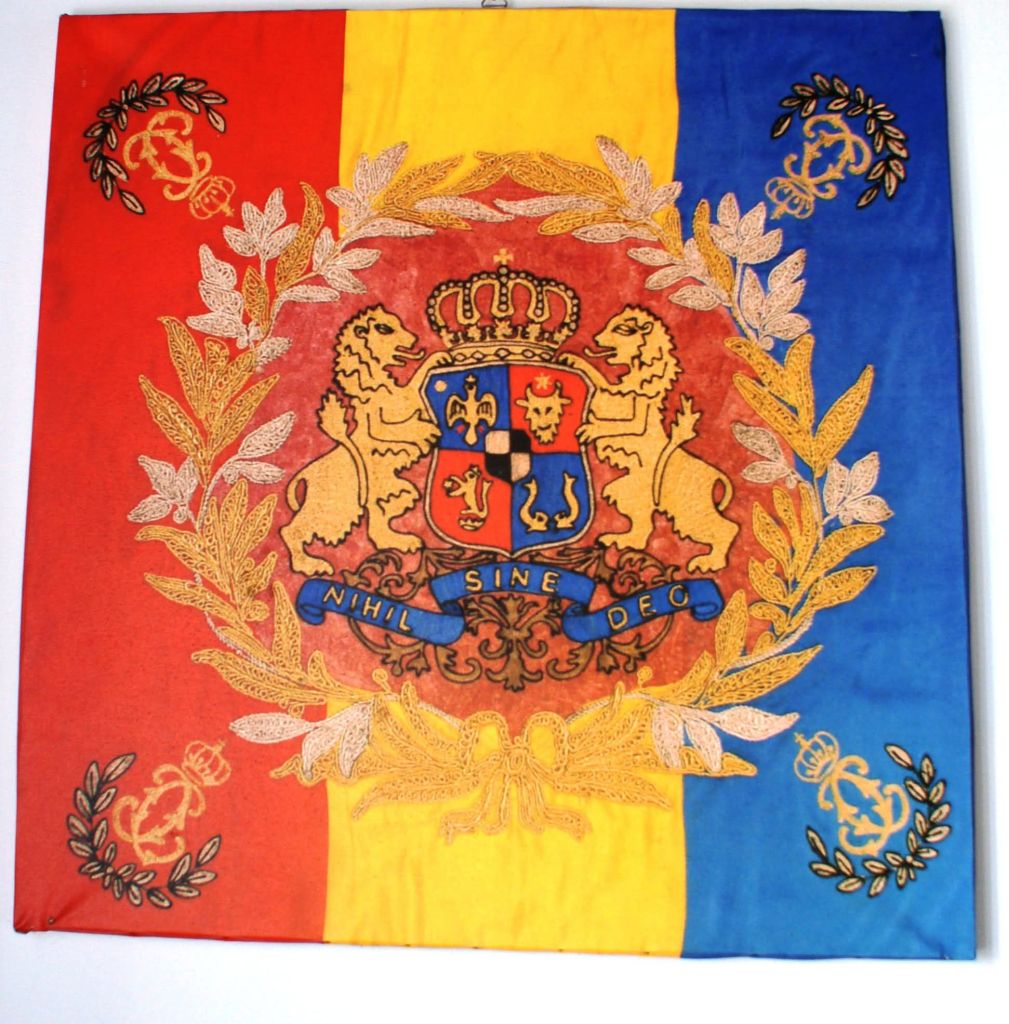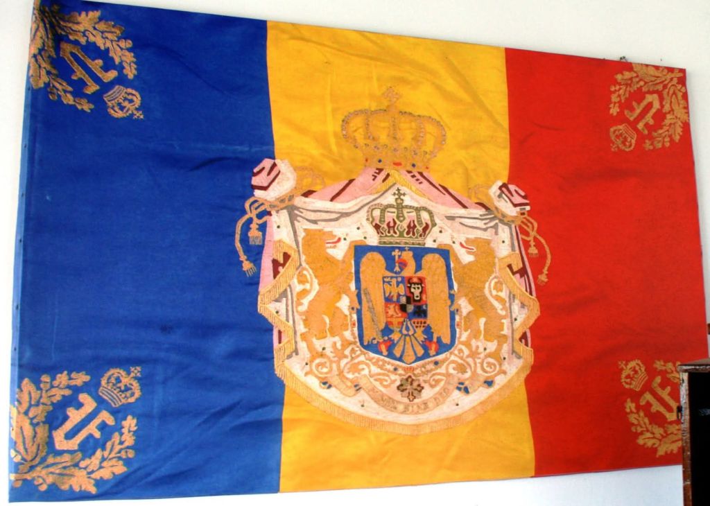 Între fotografii: Steagul Regatului României pe vremea regilor Carol I și Ferdinand.