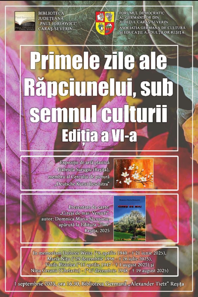 - Buchpräsentation: „Cireși de mai. Versuri = Mai-Kirschen. Dichtung“, Autor: Domnica Maria Săcușanu, erschienen im Verlag „TIM“ Reschitza, 2025;