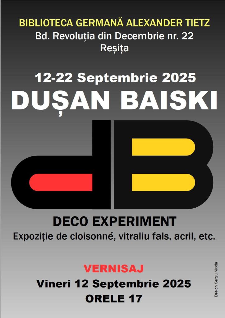 12 septembrie 2025, ora 13.00, galeria Direcției Județene pentru Cultură Caraș-Severin, Reșița: