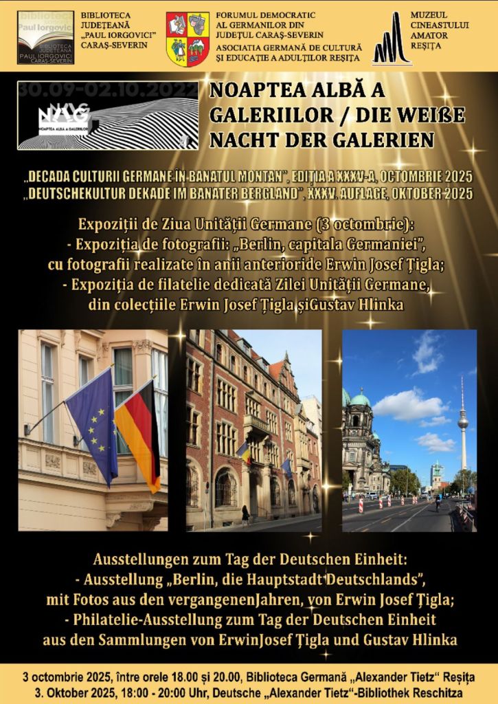 3 octombrie 2025, ora 11.00, Centrul German „Alexander Tietz“ = Biblioteca Germană „Alexander Tietz“ Reșița: