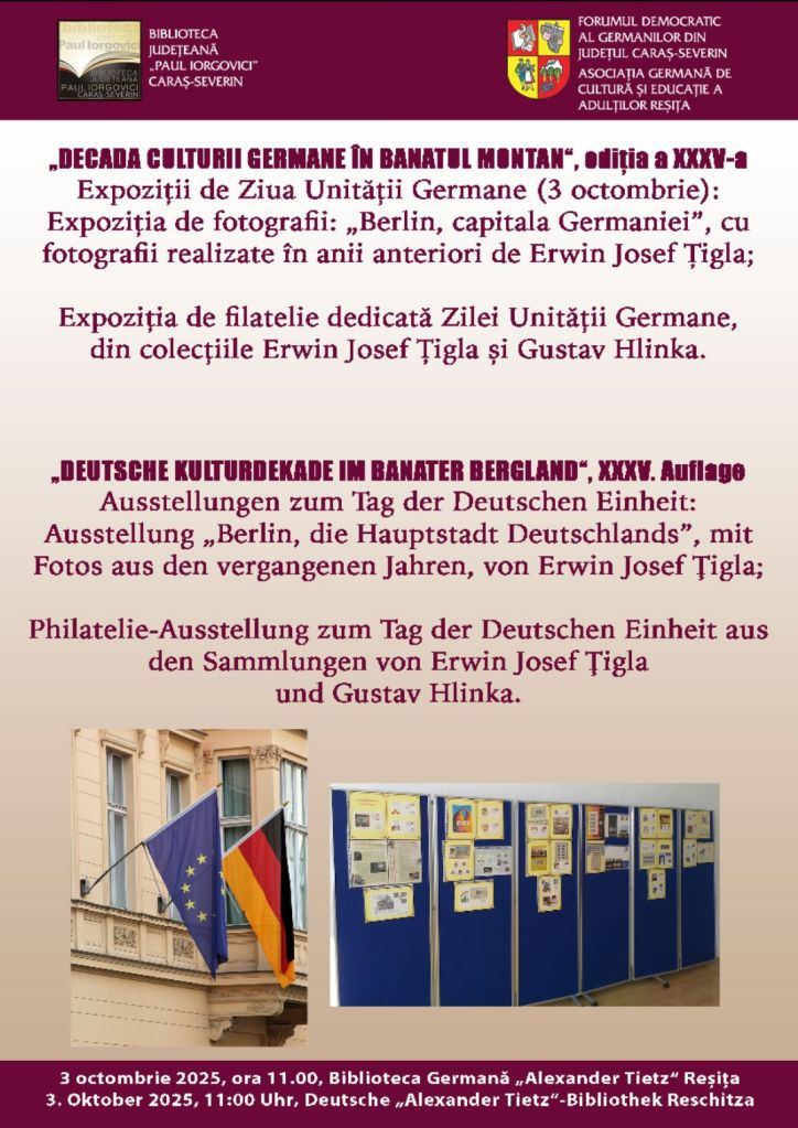 - Philatelie-Ausstellung zum Tag der Deutschen Einheit aus den Sammlungen von Erwin Josef Ţigla und Gustav Hlinka.