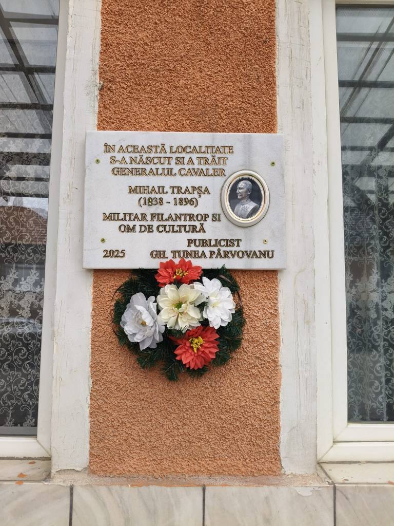 Bustul Generalului Mihail Trapșa este opera sculptorului Eugeniu Țibuleac. Lucrările au fost coordonate de arhitecta Iordache Mănescu Oana, iar echipa de constructori a fost condusă de Iacob Rotariu. La realizarea proiectului au contribuit un grup inimos de oameni care simt românește: Nicolae Babeu, Cornel Băbuță, Ilie Canea, Ion Caraibot, Constantin Panduru, Petru Panduru, Cezar Pricop, Pavel Răuț, Milan Teodorescu și Gheorghe Țunea.
