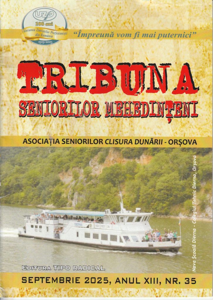 A apărut numărul 35 (septembrie 2025) al revistei „Tribuna seniorilor mehedințeni”, publicație editată la Orșova sub îndrumarea distinsei Andrușa R. Vătuiu, redactor-șef și suflet al acestei tribune culturale dedicate seniorilor. Revista, ajunsă la o maturitate remarcabilă, continuă să fie o oglindă fidelă a vieții culturale și spirituale a județului Mehedinți, promovând valorile locale și dialogul între generații.