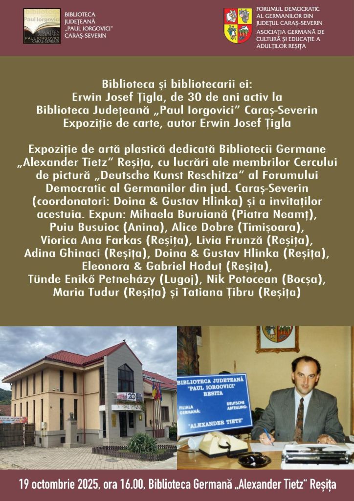 19 octombrie 2025, ora 16.00, Biblioteca Germană „Alexander Tietz“ Reșița: