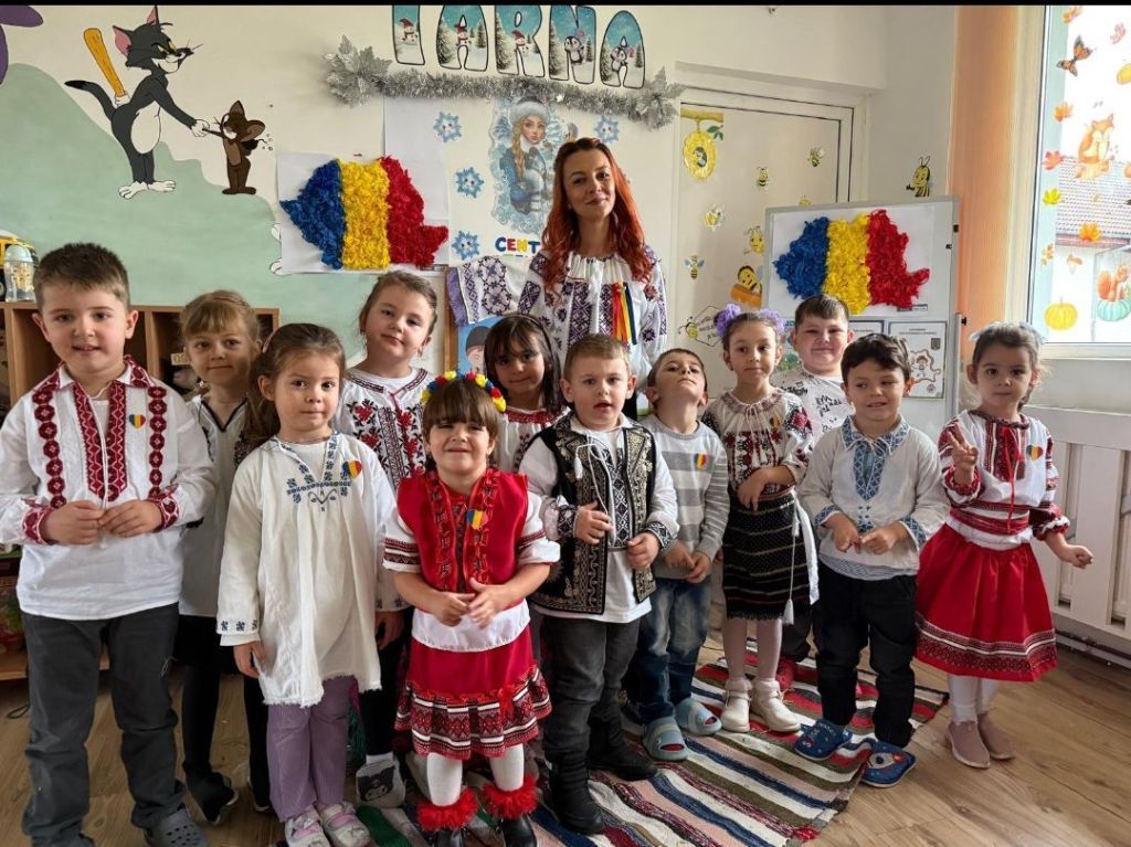 Într-un decor specific, copiii, purtând cu mândrie costumul tradițional românesc, au interpretat cântece patriotice, au confecționat stegulețe, au colorat și s-au bucurat împreună de sărbătoarea Zilei Naționale a României.