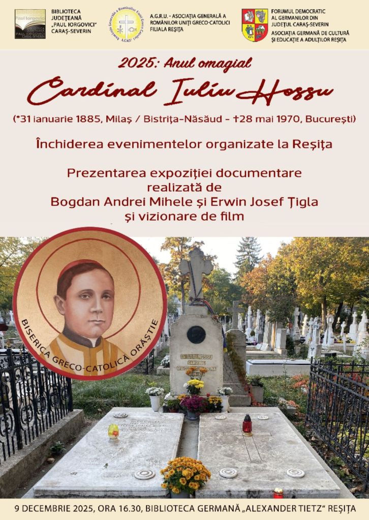 2025: Hommage-Jahr Kardinal Iuliu Hossu (*31. Januar 1885, Milaș / Bistritz-Nassod – †28. Mai 1970, Bukarest): Abschluss der Veranstaltungsreihe in Reschitza.