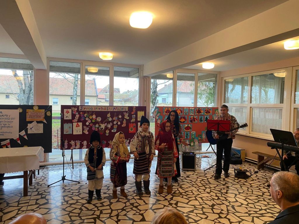 Descinderea în spațiul Școlii Generale „Sfântul Gheorghe”, școală românească, sediul acestor magice evenimente, m-a încântat prin buna organizare, pe cabinete: limba română, limbile sârbo-croate, istorie, matematică, bibliotecă având și sală de lectură, toate bine dotate, foarte curate, dovedind grijă și atenție pentru fiecare detaliu, minuțiozitate ce izvorăște din dorința de a păstra ce au mai de preț, identitatea ființei lor, cu rădăcini românești.