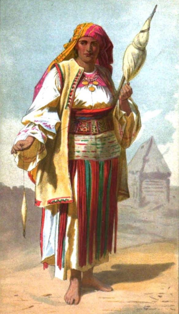 Însă, cel mai fascinant este faptul că face o descriere detaliată a îmbrăcămintei lor, în special „opregul” (numit de el ,,obrescha” – șorțul cu franjuri roșii) care le dădea un aer „sălbatic”, și un fel de bonetă albă triunghiulară, decorată cu medalii.