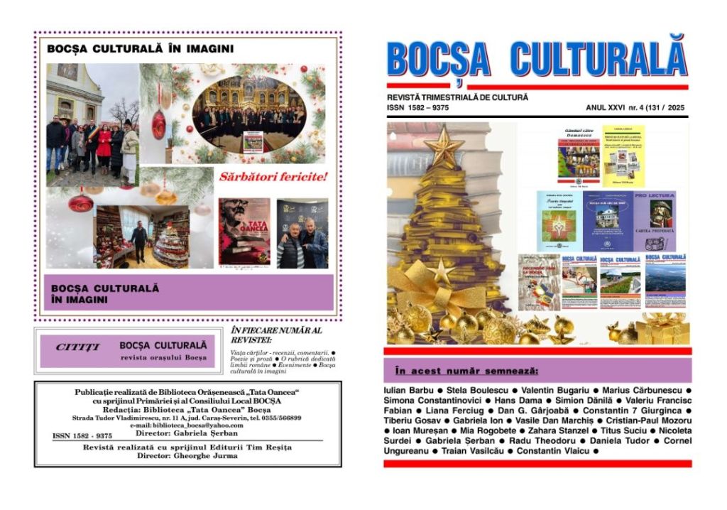 BOCȘA CULTURALĂ nr.4/2025 8 ianuarie 20268 ianuarie 2026 / uzpcarasseverin Dă clic pentru a accesa wp-1767885810105.pdf Partajează asta: Partajează pe Facebook(Se deschide într-o fereastră nouă) Facebook Partajează pe LinkedIn(Se deschide într-o fereastră nouă) LinkedIn Partajează prin WhatsApp(Se deschide într-o fereastră nouă) WhatsApp Imprimare(Se deschide într-o fereastră nouă) Imprimare Apreciază Încarc...