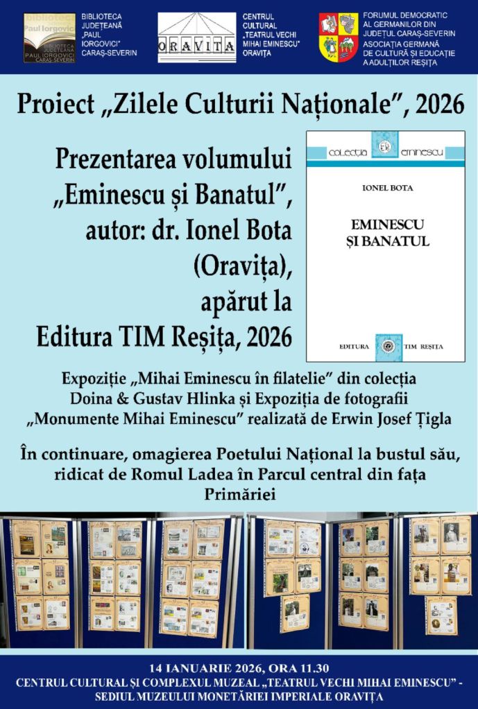 Prezentarea volumului „Eminescu și Banatul”, autor: dr. Ionel Bota (Oravița), apărut la Editura TIM Reșița, 2026.
