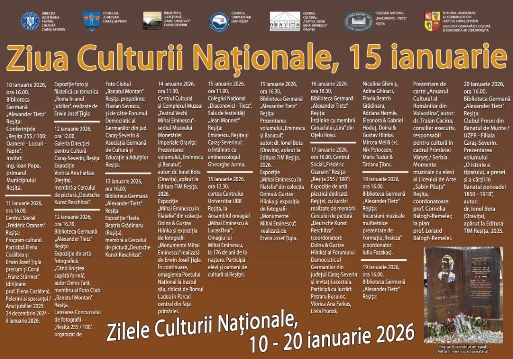 Zilele Culturii Naționale (10 – 20 ianuarie) – ULTIMA MANIFESTARE DIN MARATONUL CULTURAL LA ÎNCEPUT DE AN 2026!