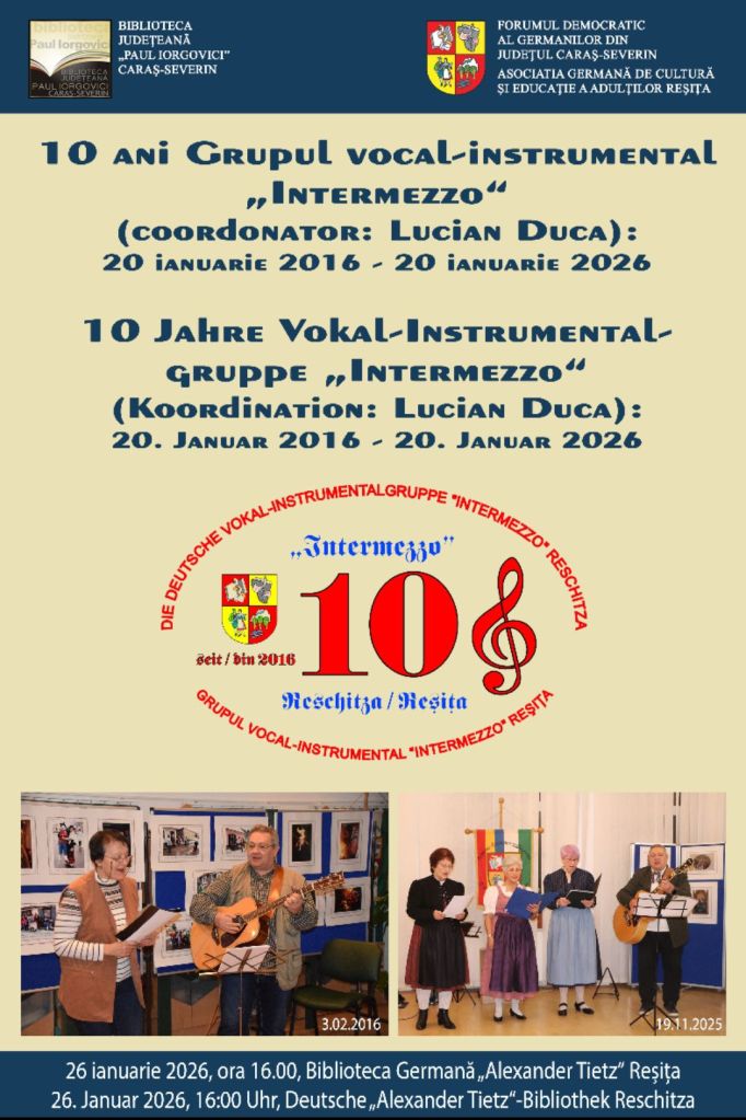 10 Jahre Vokal-Instrumentalgruppe „Intermezzo“ (Koordination: Lucian Duca): 20. Januar 2016 – 20. Januar 2026.