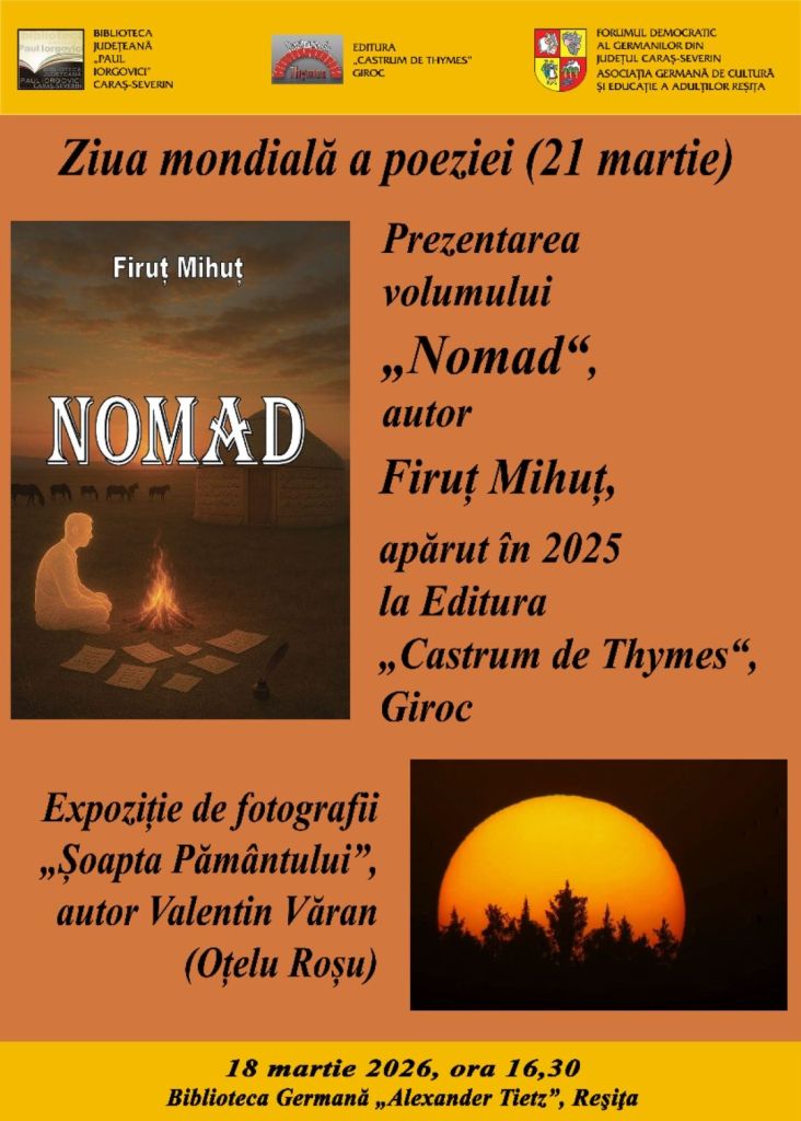 18 martie 2026, ora 16.30, Biblioteca Germană „Alexander Tietz“ Reșița: