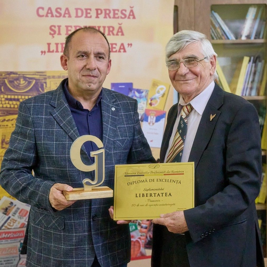 Redacția săptămânalului „Libertatea”, premiată de UZPR (audio Radio UZPR) 3 aprilie 2026 / uzpcarasseverin Săptămânalul „Libertatea” din Serbia, a primit din partea Uniunii Ziariștilor Profesioniști din România, Premiul de Excelență pe anul 2025. Ceremonia a avut loc la Panciova, Serbia. Reportaj realizat de Mario Balint, UZPR Caraș Severin. Partajează asta: Partajează pe Facebook(Se deschide într-o fereastră nouă) Facebook Partajează pe LinkedIn(Se deschide într-o fereastră nouă) LinkedIn Partajează prin WhatsApp(Se deschide într-o fereastră nouă) WhatsApp Imprimare(Se deschide într-o fereastră nouă) Imprimare Apreciază Încarc...