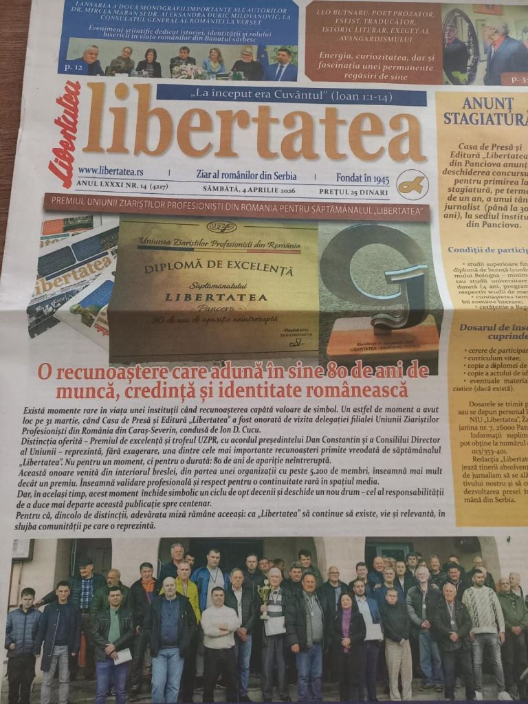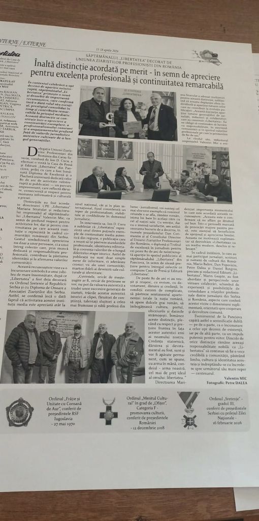 Pentru că, dincolo de distincţii, adevărata miză rămâne aceeași: ca „Libertatea” să continue să existe, vie și relevantă, în slujba comunității pe care o reprezintă.