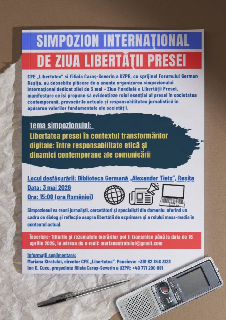 duminică, 03 mai 2026, este o zi cu o semnificație aparte: Ziua Mondială a Libertății Presei, un eveniment de referință pentru breasla noastră, profesie căreia ne-am dedicat cu pasiune și responsabilitate.